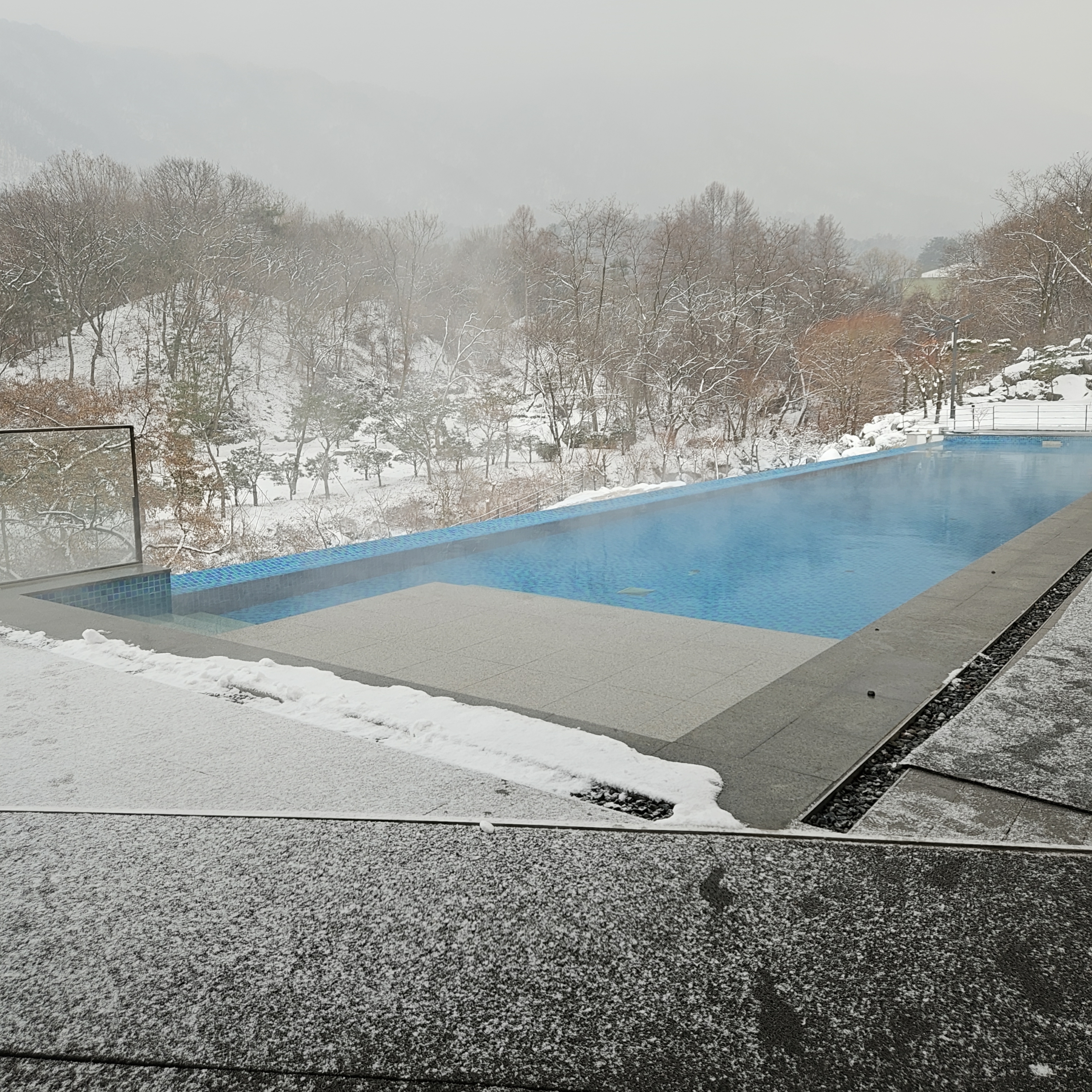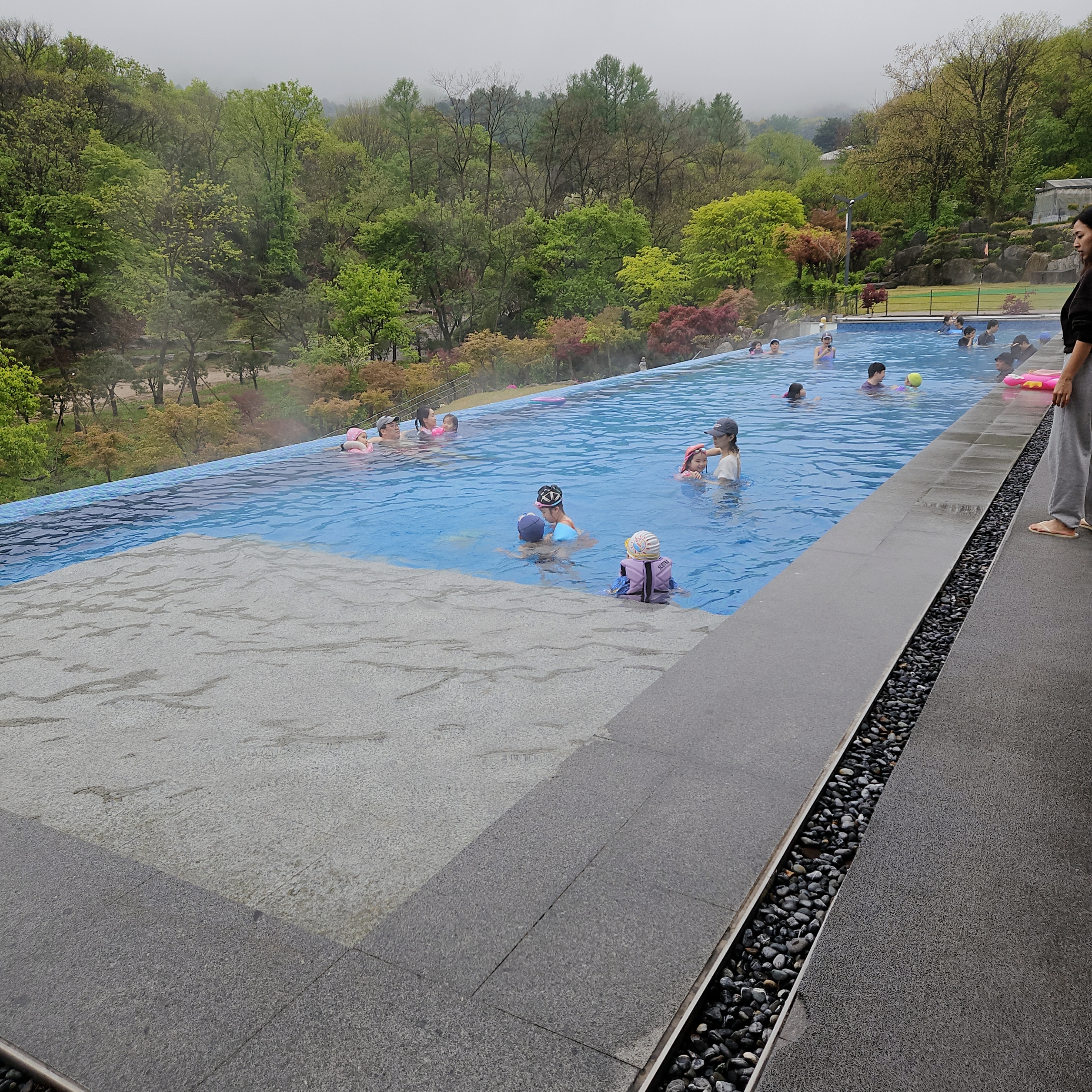 수영장은 오후 3시~6시 운영이고, 연박하면 오전에도 이용 가능해요. 한겨울에도 실내 온수풀은 정말 따뜻해서 아이와 오래 놀 수 있었고, 야외 인피니티풀도 온수라서 만족스러웠어요.